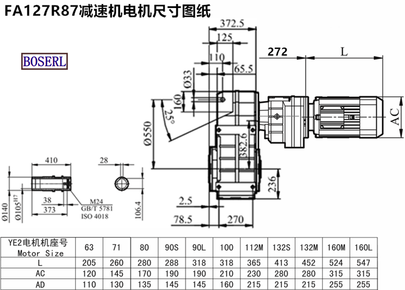 | 分體減速機 | FA129R89YS160M4 | FA129R89DRE160MC4 | FA129R89DRL160M4 |